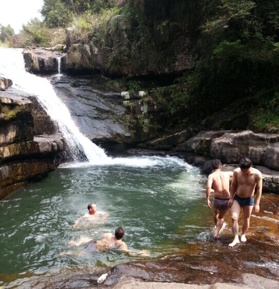 此次活動(dòng)第一目標(biāo)是清江田瀑布。經(jīng)過(guò)菜園、田野來(lái)到沿瀑布的一條小路,看到不是路的路,大家都沒(méi)有放棄而是勇往直前,開(kāi)始走進(jìn)郁郁蔥蔥的樹(shù)林里,經(jīng)過(guò)一夜的大雨,我們看到了葳蕤生光的葉子、晶瑩剔透的露珠、清閑香甜的空氣,這生機(jī)盎然的大自然,靜物安詳?shù)淖屛覀冇芍缘牟粩噘潎@著。沿著凹凸不平的小徑,推入開(kāi)遮蔽道路和灌木,爬著長(zhǎng)滿青苔濕滑的石頭,小心翼翼的避開(kāi)不知名的動(dòng)物,我們很快就來(lái)到了清江田瀑布。此次徒步讓大家都明白了,工作中的困難是為了讓我們看到最美的風(fēng)景。